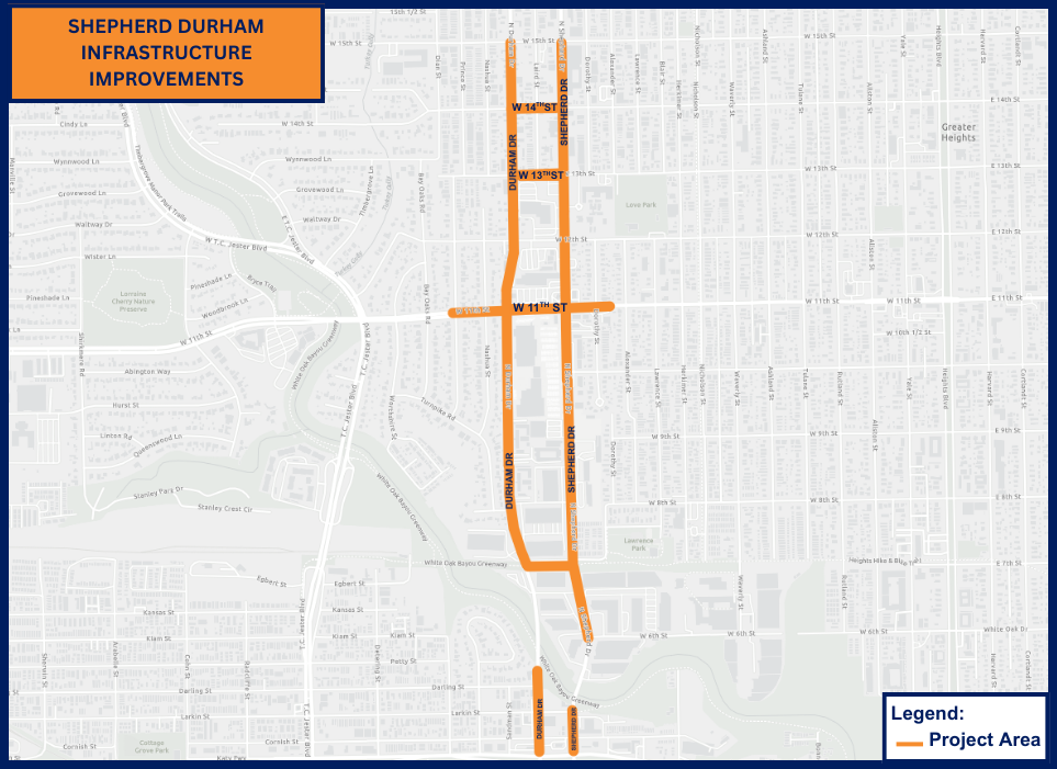 The Shepherd Durham Improvements project focuses on the design and reconstruction of this one-way pair corridor, adding modern infrastructure and safety features. Here’s why it matters:
